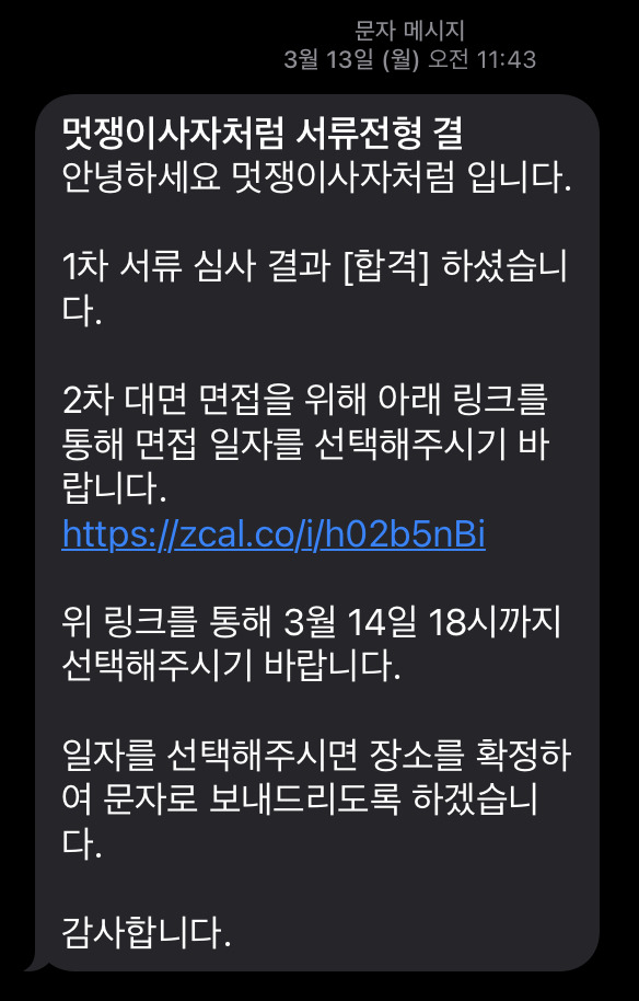 지금에서야 알게 됐지만 면접관으로 회장님이 참여하셨는데 면접자의 의견에 경청하는 모습이 매우 인상적이었다. 때문에 면접을 진행하는 데 있어 긴장하지 않고 오히려 편하게 면접에 임할 수 있었다.